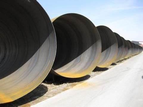 螺旋鋼管是以帶鋼卷板為原材料,經(jīng)常溫擠壓成型,以自動雙絲雙面埋弧焊工藝焊接而成的螺旋縫鋼管。螺旋鋼管將帶鋼送入焊管機組,經(jīng)多道軋輥滾壓,帶鋼逐漸卷起,形成有開口間隙的圓形管坯,調整擠壓輥的壓下量,使焊縫間隙控制在1~3mm,并使焊口兩端齊平。